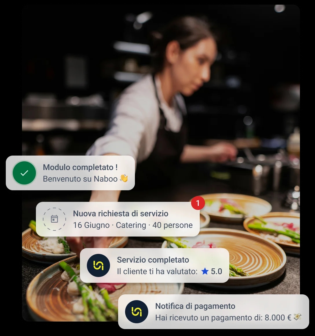Sei un professionista dell'evento e desideri sviluppare la tua attività? Unisciti a Naboo e diventa visibile a più di 5000 aziende clienti in tutta Europa!